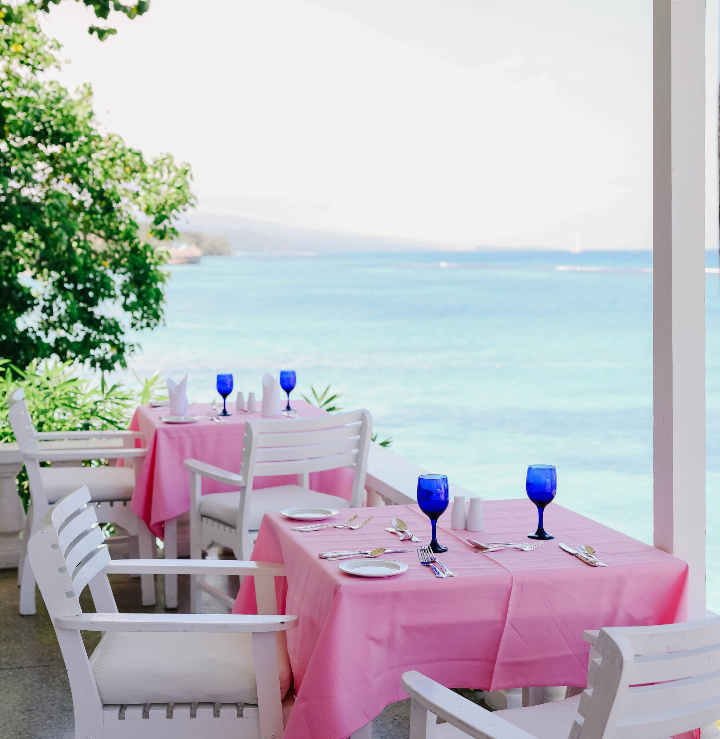 Located just outside of Ocho Rios, on a private beach, the 52 guest rooms are spread over eight acres, including eight cottages with private plunge pools and plenty of space to spread out. The verandah suites are classic and what we came for this time around, featuring palatial outdoor living rooms complete with a comfy sofa, chairs, coffee table, and dining table–in addition to ceiling fans and a mini fridge. It’s where we spent most of our time.
